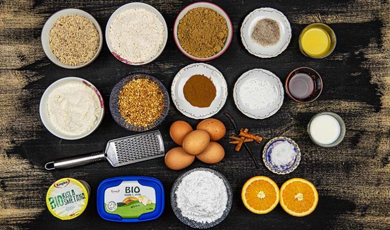 • 300 g moke (1/2 pirine, 1/2 pšenične bele moke)